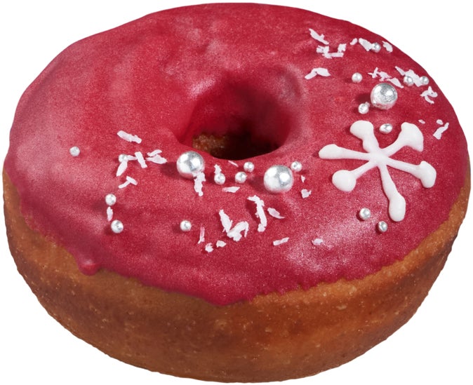 ストロベリーとラズベリー2種類のベリーの甘酸っぱさが楽しめる、鮮やかなグレーズの冬季限定ドーナツ。