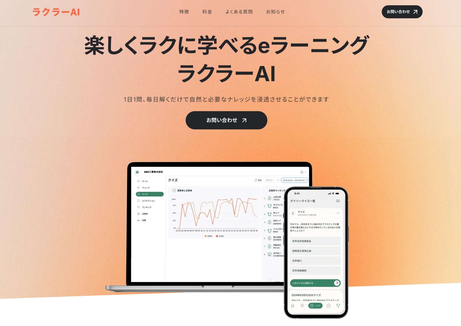 ラクに学べて確実に成長!クイズ形式のeラーニングプラットフォーム「ラクラーAI」リリース
