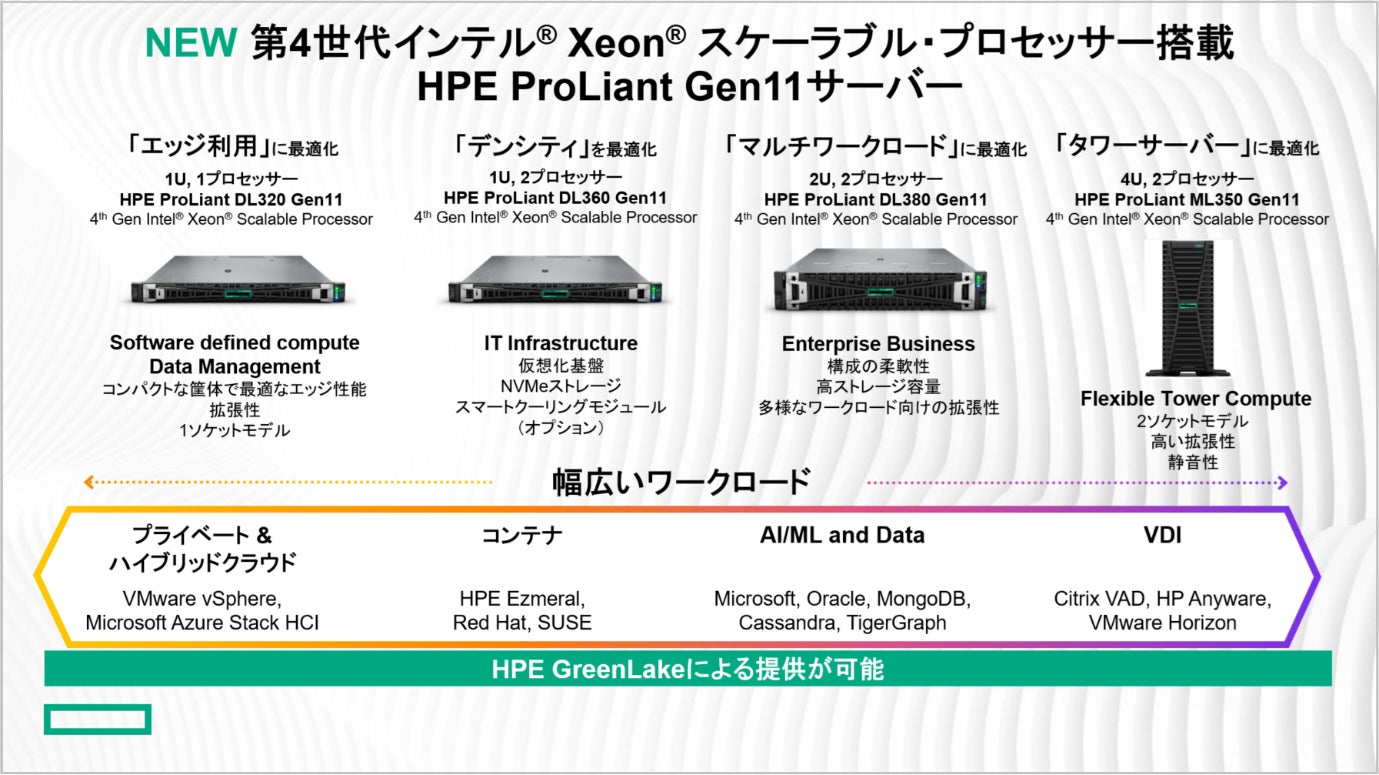 また、今後、以下のHPE ProLiant Gen11サーバーラインアップを拡張し、さらに広範囲なワークロードとユースケースに応えます。