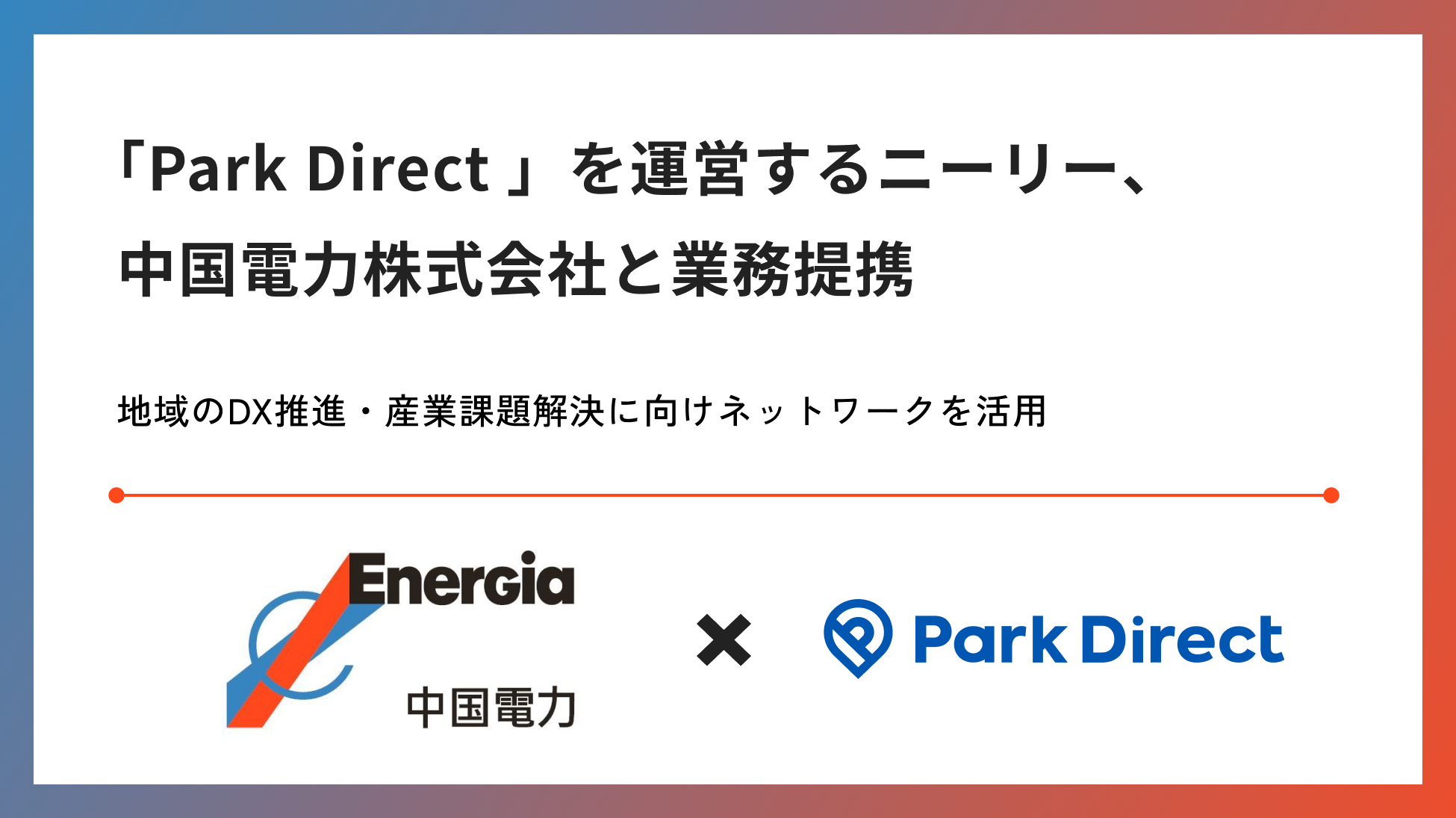 「Park Direct」を運営するニーリー、中国電力株式会社と業務提携