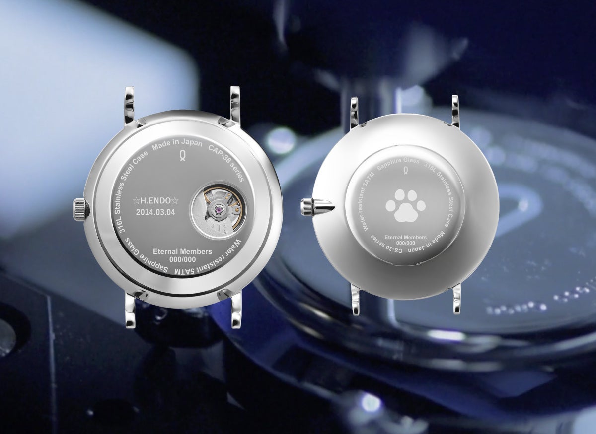 フルカスタムオーダーの楽しみをさらに拡張するために、ケースバックへの刻印サイズを大幅に大きくした裏蓋をご用意しました。今回はテキストメッセージもレギュラーサービスの2倍!さらにグラフィック刻印のオプションもご用意しております。