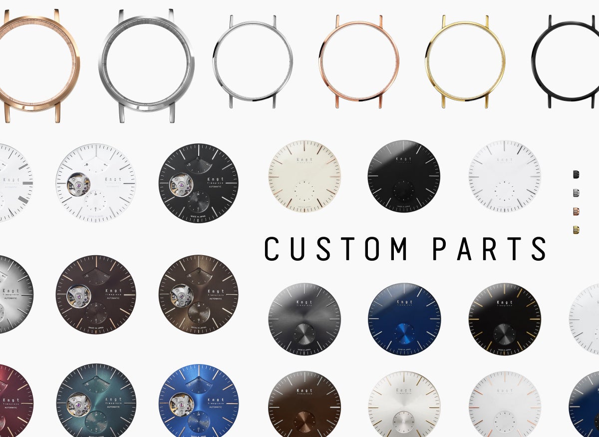 さらに、ケース、ダイヤル(文字板)、リューズを組み合わせることで組み合わせは何十万通りにも!