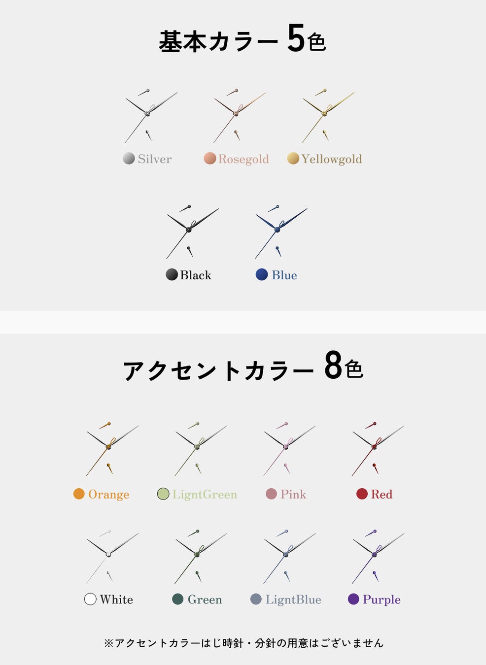 針は全13色(基本5色+アクセントカラー8色)から選べるパーソナルカラーをご用意