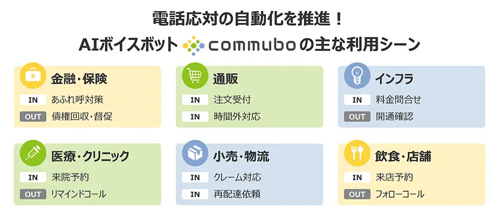 「commubo」は「継続的で」「複雑な」音声の会話に対応する自然会話AIボイスボットです。