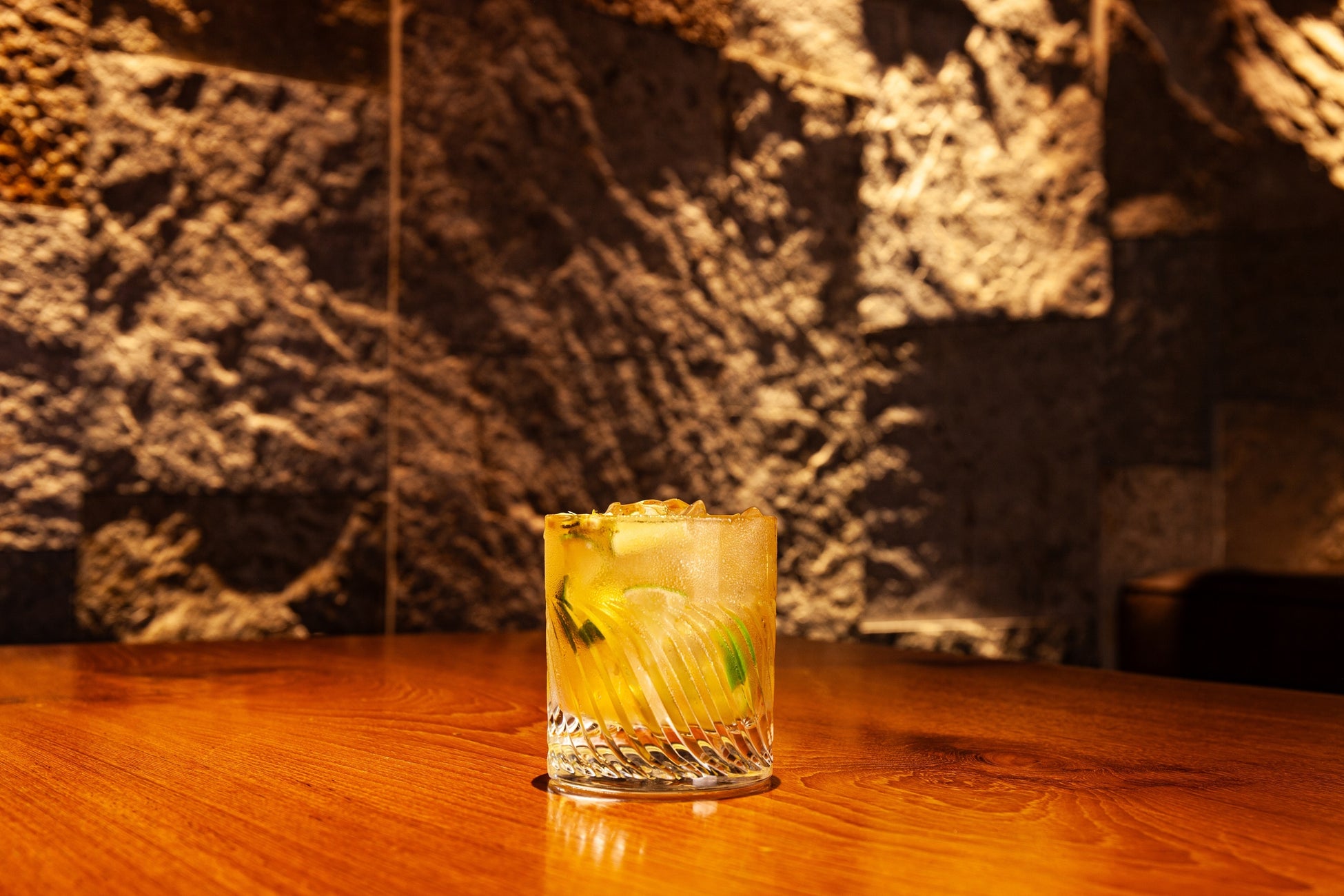 南米ブラジルの代表カクテル、カイピリーニャをバーホテル風にアレンジ レポサドの柔らかさを軸にジャスミンティーを合わせました。フレッシュライムの爽やかさ、トニックウォーターディダクションの苦みがアクセントになったカクテル