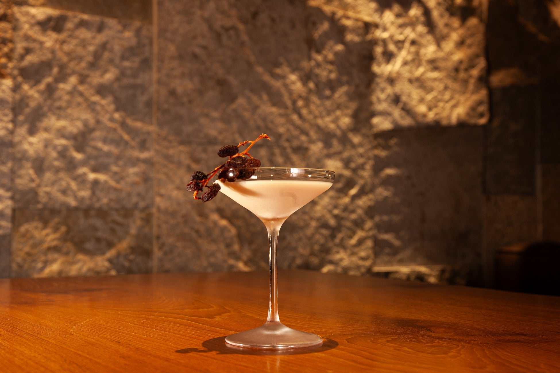 熟成感のあるリッチな味わいのアネホを使用し自家製ラムレーズンシロップをアクセントにした濃厚なデザートカクテル