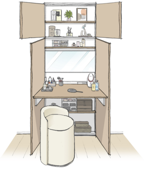 オプションでミラーを追加すれば、プライベート感漂う贅沢なドレッサースペースとしても活用できます。