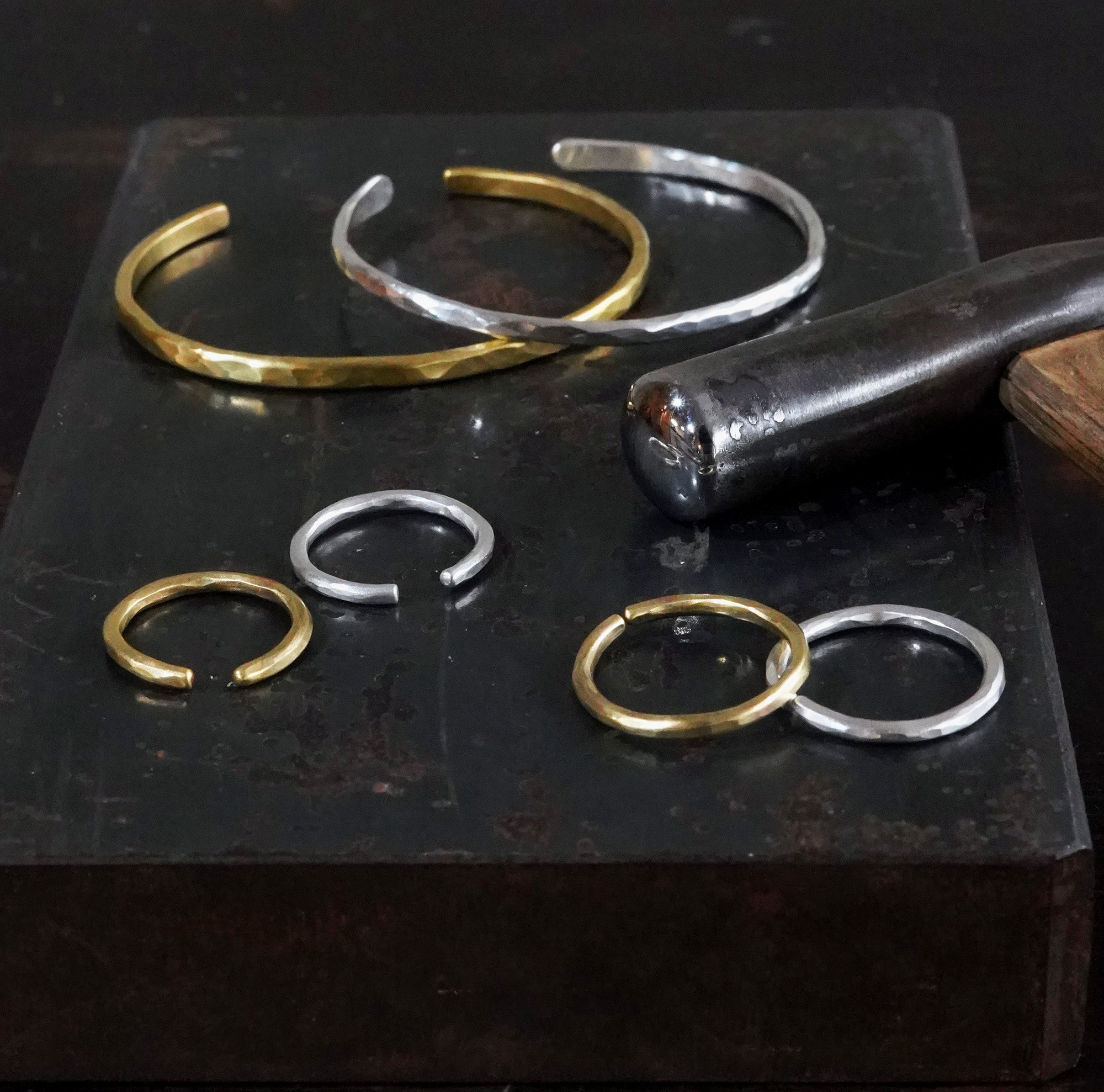 ハンマーで模様を打った真鍮やシルバーを使い、リングやバングル、イヤーカフの制作体験ができます。日程 :4月23日(日)