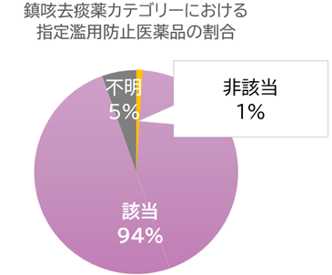 本製品は26年5月施行予定の指定濫用防止医薬品に該当しない非麻薬性成分のせき止め薬です。