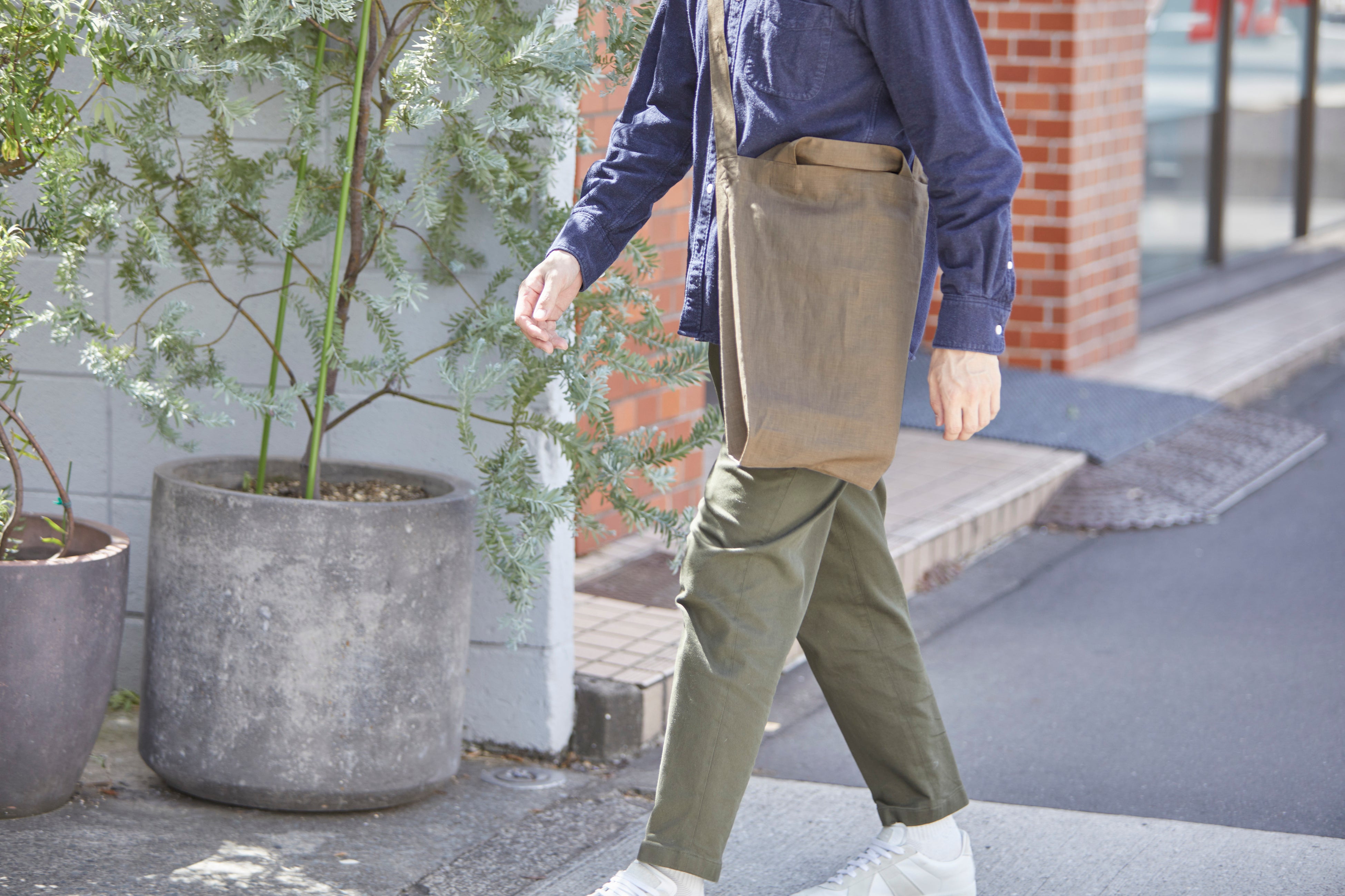 100%ボタニカルダイのエプロンやバッグなどのライフグッズを手がけるLefts,(レフツ)とコラボレートした「ブルーボトル スタジオ トートバッグ」。残反(布製品が作られるときに出る端切れ)がなるべく出ないようなパターンメイキングにこだわり、Blue Bottle Studio - Kyoto - のバリスタのトレーニングで出たコーヒーの抽出殻を使って染めたトートバッグです。Lefts,のユニークな形状のトートバッグをベースに、短いハンドルと長いショルダーストラップがついた2通りの使い方ができる、ブルーボトルコーヒー オリジナルデザインとなっております。落ち着いた色合いやシンプルさが日々のシーンに溶け込み、心地良い手触りと使い心地で長くご愛用いただけるアイテムです。