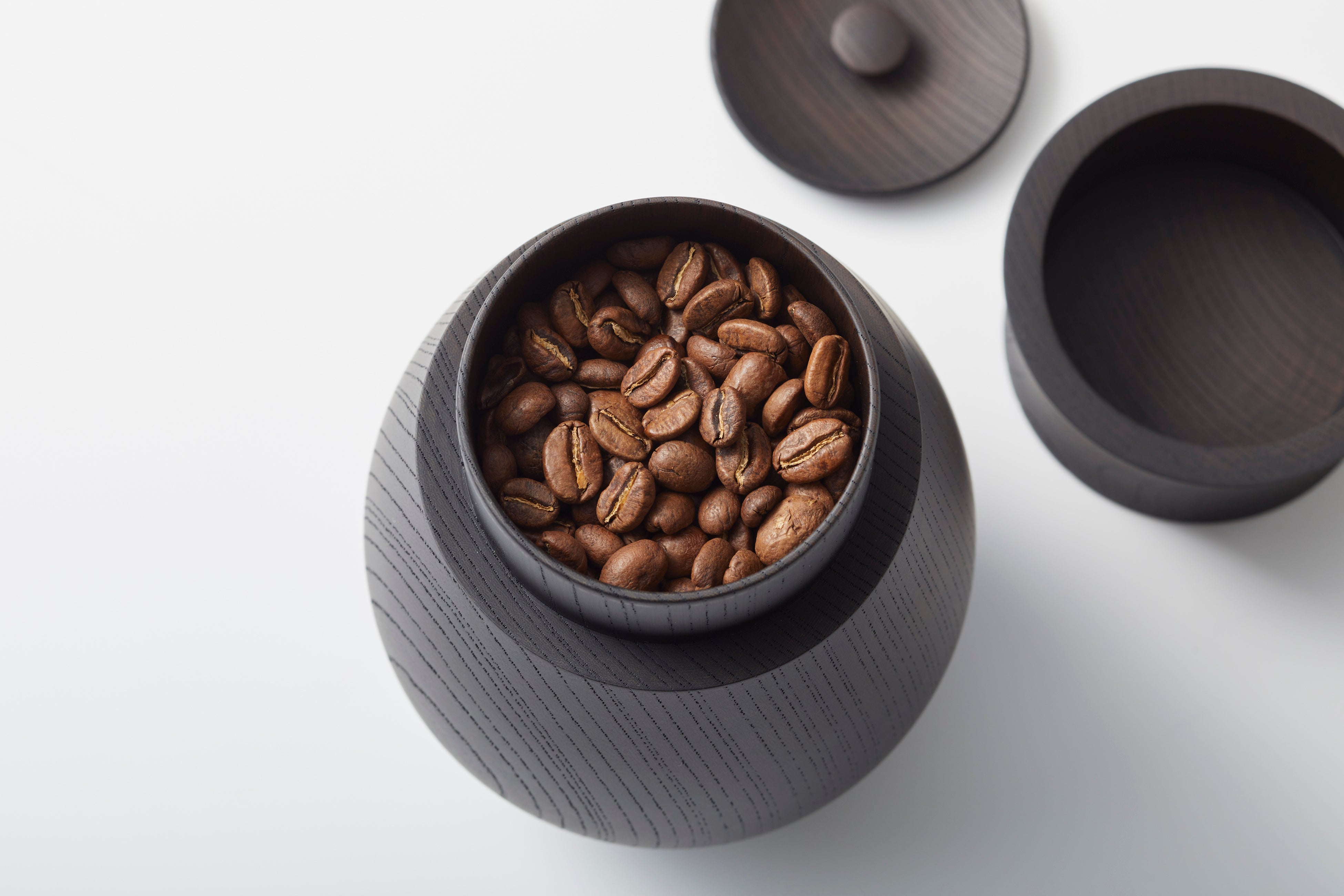 世界一の木地轆轤(きじろくろ)挽きの技術を持つと言われる、山中漆器の木地師。その高い技術と造形力で漆器を作り出している我戸幹男商店と、プロダクトデザイナーの竹内茂一郎氏、そしてブルーボトルコーヒーのコラボレーションによって誕生したキャニスターとカップです。一つ一つ丁寧に挽き上げた繊細で優美な曲線と、無垢のけやきの重厚感のあるデザインは、まるでオブジェのように静かに、そして穏やかに空間に佇みます。キャニスターは熟練の技により、本体と蓋が隙間なく閉まるよう高い精度で作られており、密閉性が高く外気の影響を受けにくいため、コーヒー豆の保存に適しています。カップは木の温もりを感じられる柔らかな曲線で、手に馴染みやすく、香りを楽しんでいただけるよう口が開いた作りでコーヒーのための特別な器です。一緒にお使いいただくことでご自宅でのコーヒー体験をより一層豊かなものにしてくれます。