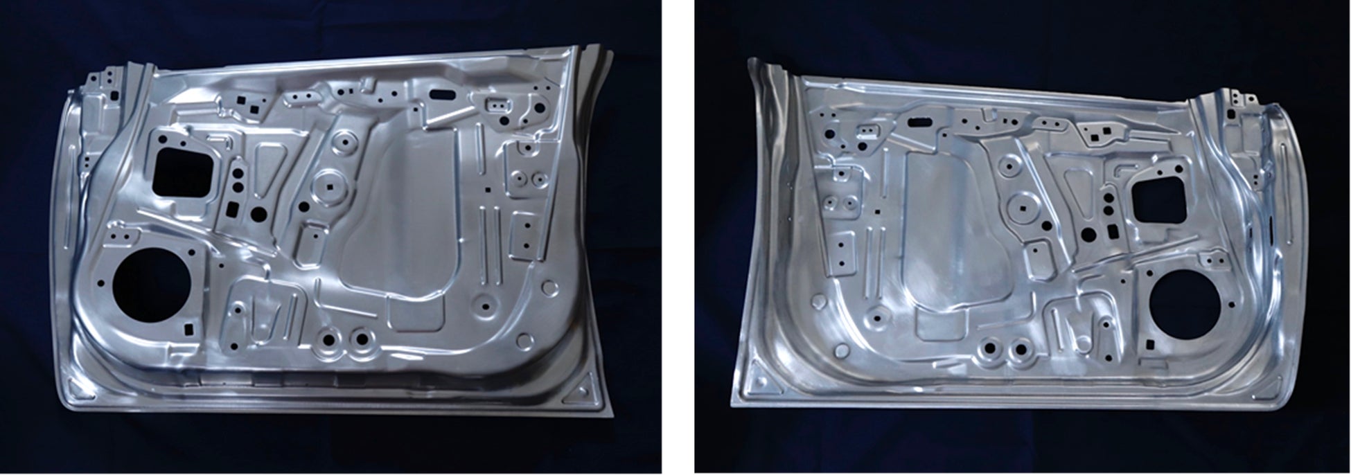 ・アルミホットスタンプ1回プレスで製造後、レーザートリム(縁切り)、ピアス(穴あけ)を実施