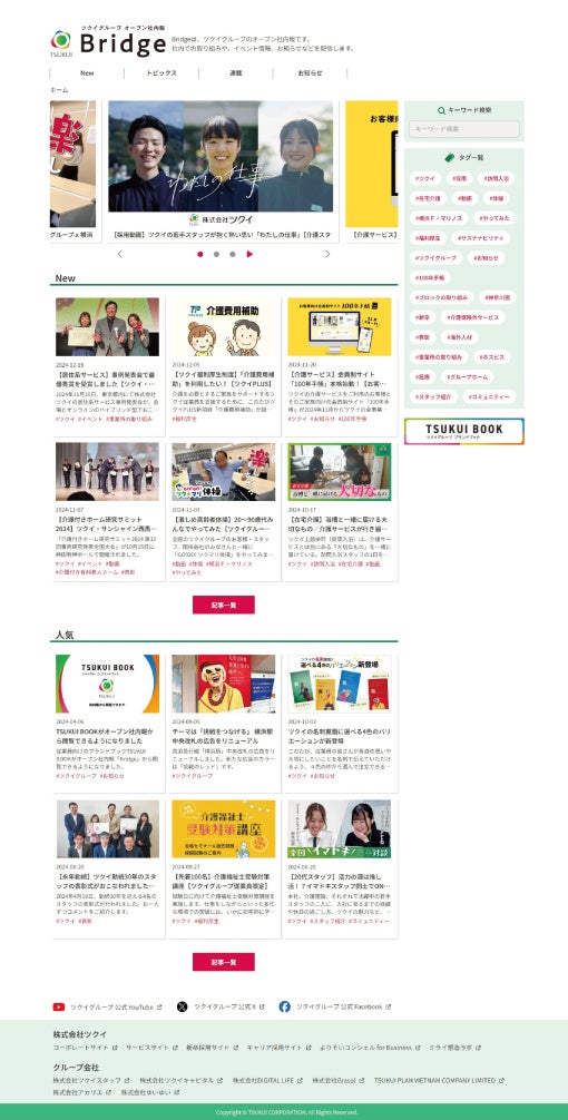 株式会社ツクイ(本社︓神奈川県横浜市、代表取締役社長 高畠 毅、以下「当社」)は1月23日、当社およびグループ会社の従業員が当社に関する情報や当社の取り組みなどをいち早く確認できる社内報「Bridge(ブリッジ)」を、オープン社内報として一般公開しました。