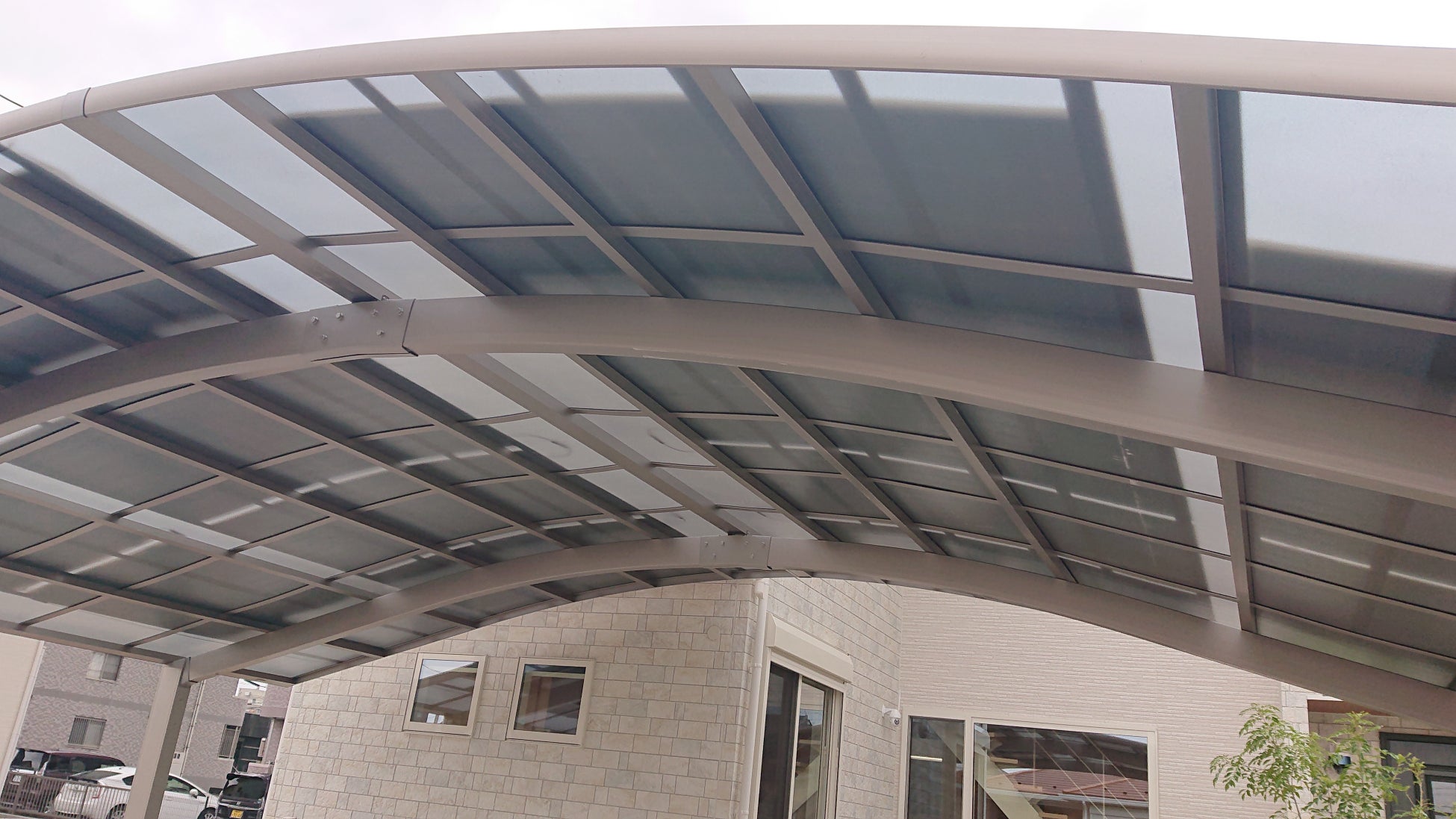 ※1メーカー保証で湾曲カーポート屋根への直貼りでの事例として当社調べ。