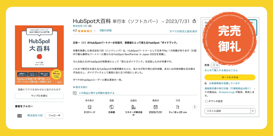 書籍「HubSpot大百科」、Amazon単行本完売(品切れ)のお知らせ