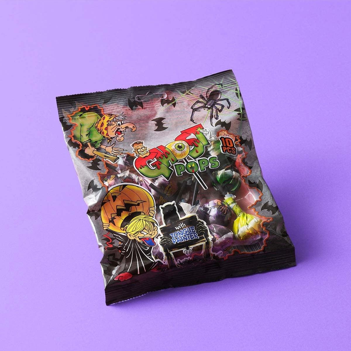 舐めたら舌が赤色や青色に変わるちょっぴりホラーなロリポップキャンディです。チェリー風味とラズベリー風味が約10本入っています。