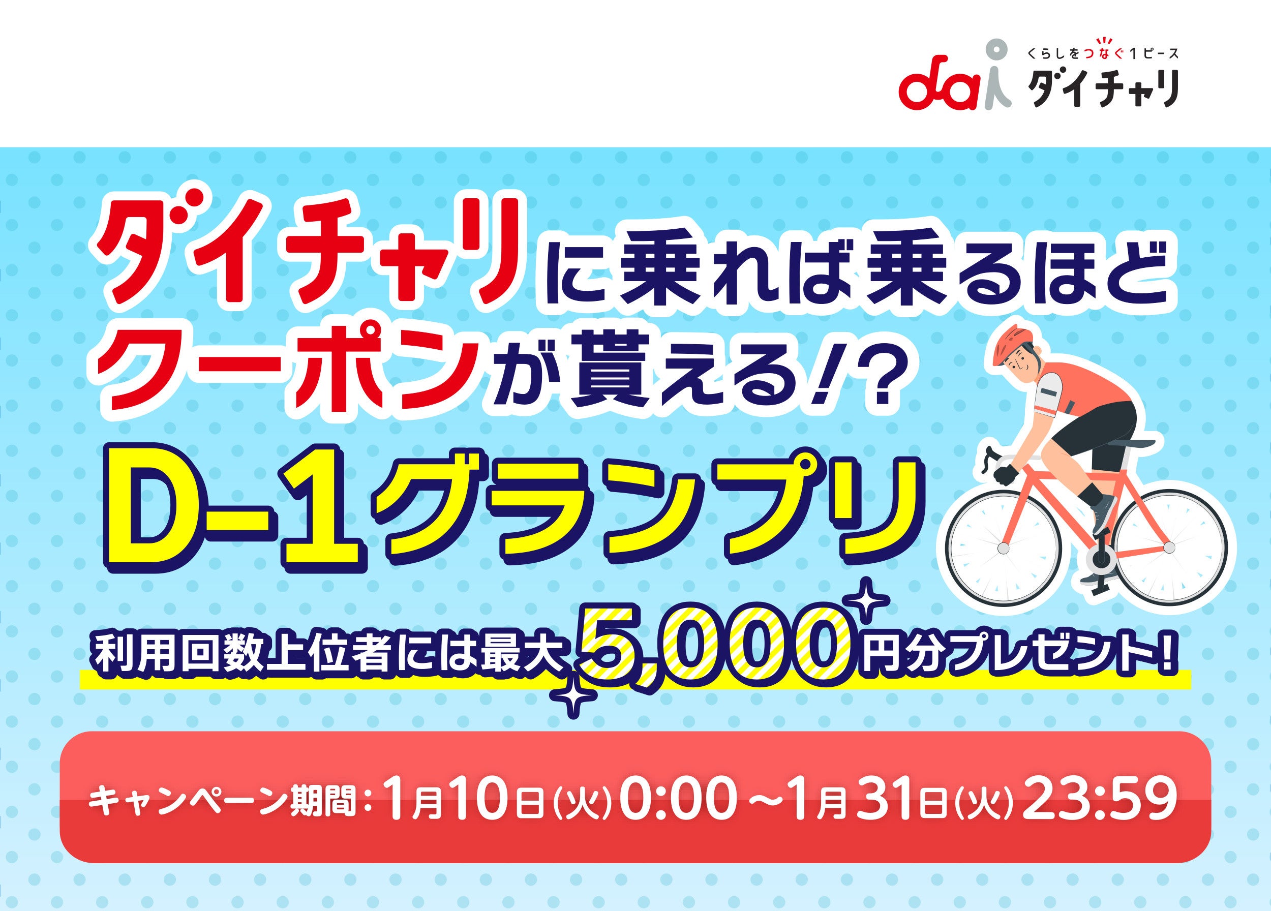 「ダイチャリ」にたくさん乗ってランキング上位を目指せ!1月10日より、乗車クーポンが当たる「D-1グランプリ」を開催!