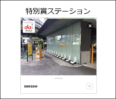 本グランプリは、日頃よりご利用いただいているユーザーの皆さまへの感謝を込めて、1月10日(火)から1月31日(火)の期間中に、「ダイチャリ」自転車をご利用いただき、ステーションに返却された回数に応じてランキングを決定し、上位入賞者に乗車クーポンをプレゼントするものです。また、ダイチャリとして初めて設置したステーションである「seesaw(東京都港区海岸1-4-22)」に一番多くご返却いただいた方には、特別賞※1を授与いたします。