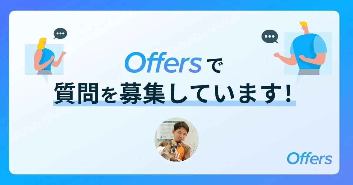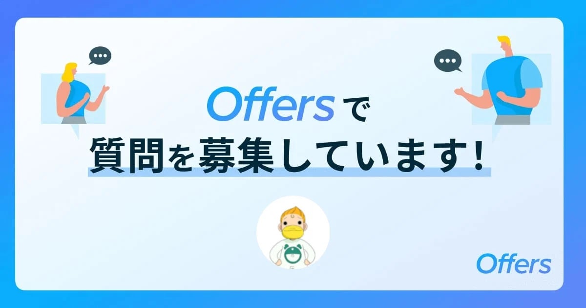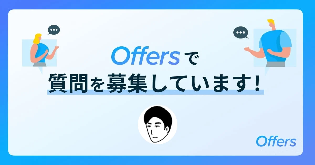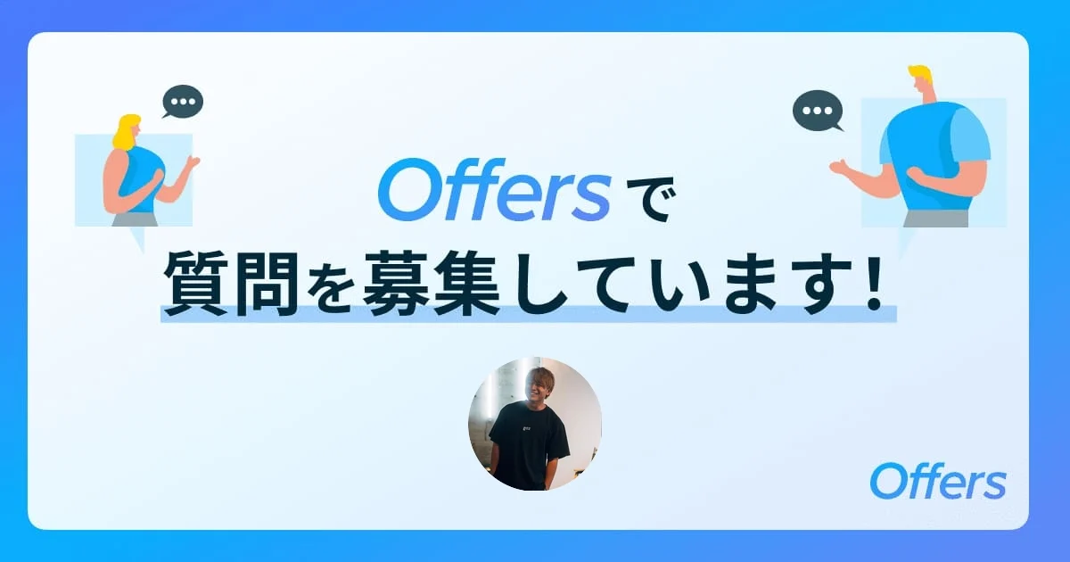 「Offers Q&A」は、プロダクト開発の知見が集まるQ&Aプラットフォームです。ITエンジニアやデザイナー、PMなどのプロダクト開発人材が、仕事に関するスキルやキャリアの悩みなどの解決策を相互に共有することで、解決のヒントとなる場を提供します。また、Offersをご利用いただいている企業様も回答が見ることができ、プロダクト開発人材が考えていることの理解や人となりがわかることによるマッチング率向上も支援します。