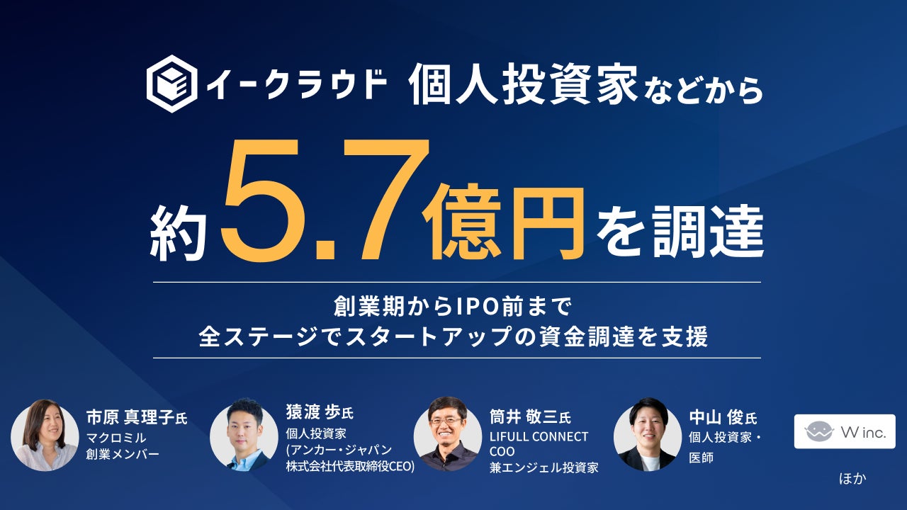 イークラウド、個人投資家などから約5.7億円を調達。個人のスタートアップ投資を加速する新サービス開始に向けて