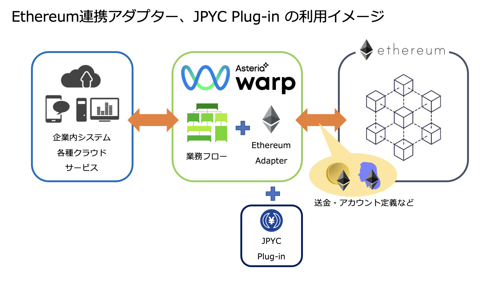 ASTERIA Warp連携「ASTERIA Ethereumアダプター」のERC20規格への連携機能の追加により、JPYCの企業での活用が進み、日本円ステーブルコインの社会実装を推し進めて参ります。