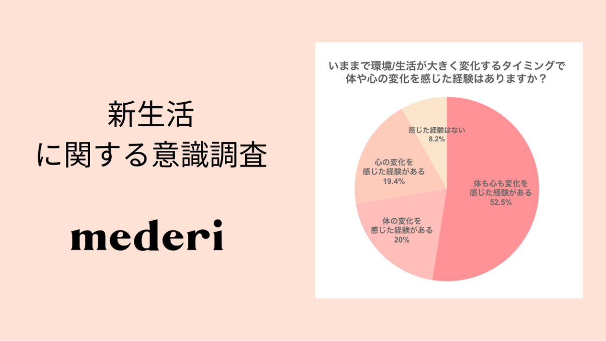 進級/進学・就職/転職・転勤/異動・引越しといった、いわゆる“新生活シーズン”は体や心の変化が起こりやすくなる季節です。こうした生活環境が大きく変わるタイミングにおいて、「社会人になってから生理痛が悪化した」という声をmederi会員のみなさまから多数いただいてきたことから、このたびmederiでは生活環境の変化および生理トラブル悪化の現状と関連性をテーマに、本調査を実施いたしました。