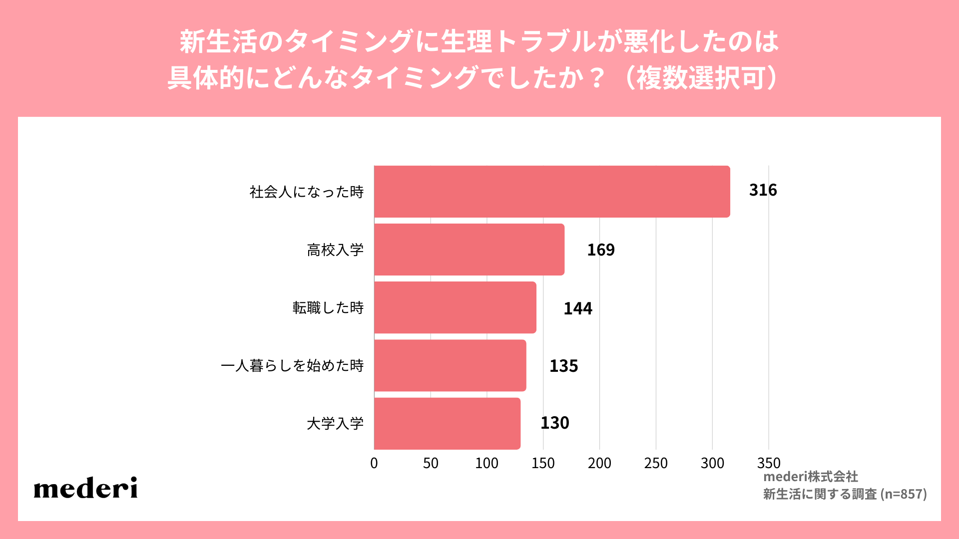 【mederi調査】約7割が新生活のタイミングで心や体の変化による生理痛・PMSなどの生理トラブル悪化を経験
