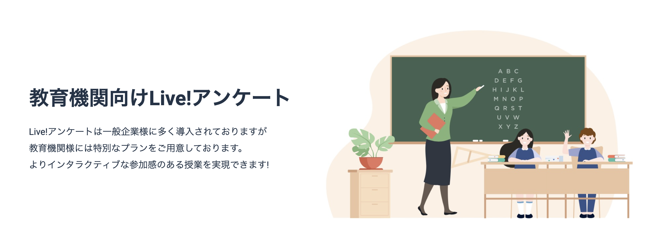 イベントを盛り上げるWEBアンケートシステム「Live!アンケート」が小学校・中学校・高校・大学の授業を盛り上げる「教育機関向けプラン」を新設!