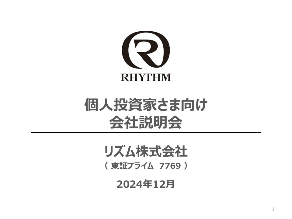 リズム株式会社(取締役社長 湯本武夫)は、個人投資家の皆さまに向け、オンライン会社説明会の動画を公開いたしました。