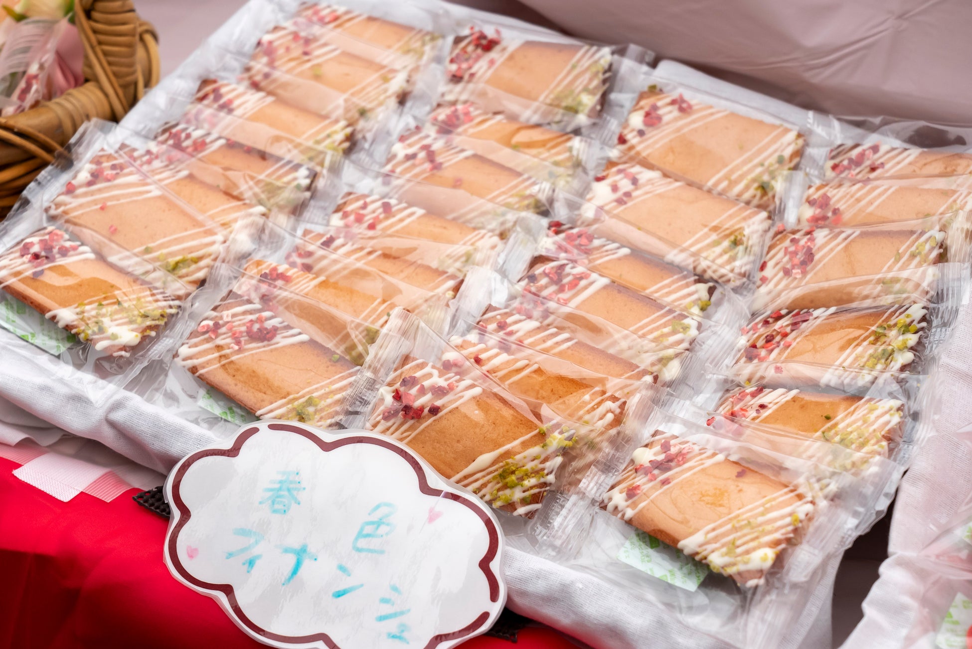 フリーズドライ苺とピスタチオをトッピングした「フィナンシェ」