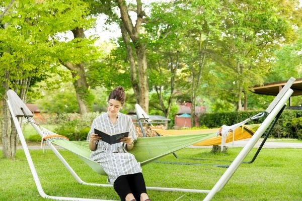 自然に囲まれた上質な宿泊体験ができる「テントキャビン」、アウトドアリビングと、アウトドアダイニングで森の四季を満喫できる「テラスハウス」、長期滞在にもおすすめの「テラスハウスプレミアム」ほか、ご宿泊の方のみご利用可能な露天風呂付き天然温泉「紅葉乃湯」や焚火ガーデン、ハンモックガーデンなどでお楽しみいただけます。