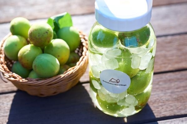 リソルの森の梅園で梅のもぎ取りから体験できる「梅酒づくり」を開催いたします。5月中旬までの青梅を使用すると清涼感のあるすっきりとした味わいの梅酒に、5月下旬からの完熟梅を使用するとフルーティで芳醇な味わいに仕上がります。お好みに合わせてシロップにも変更可能です。