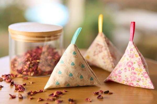 ハーブの香りを一つ一つ聞いて自分でセレクトした好きな香りでサシェを作る「ハーブのサシェづくり」を開催いたします。サシェとは、フランス語で乾燥させたハーブやお花を詰め込んだ小さな香り袋のことを言います。テトラ型サシェは、お好きな場所に置いたり、クローゼットにかけたり、幅広い使い道があります。寝室の枕元に置くと、ほのかな自然の香りに包まれながら眠りにつくことができます。