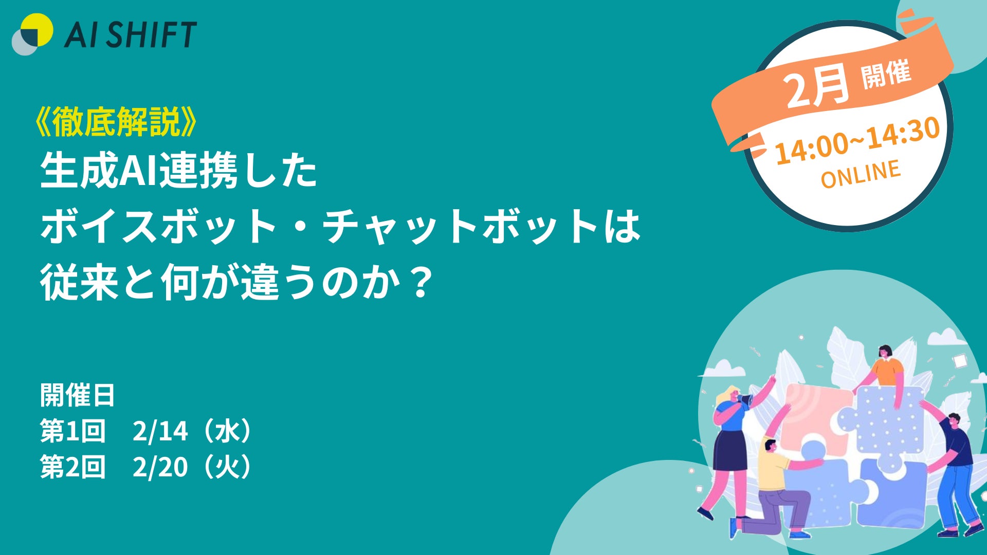 《徹底解説》生成AIと連携したチャットボット・ボイスボットは初期構築・運用工数・ユーザビリティーを大幅改善!最新事例・従来との違いを紹介するオンラインセミナー開催
