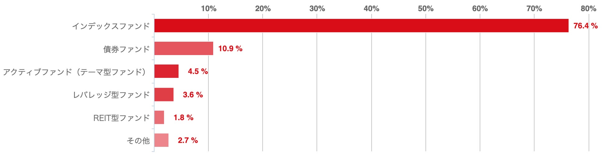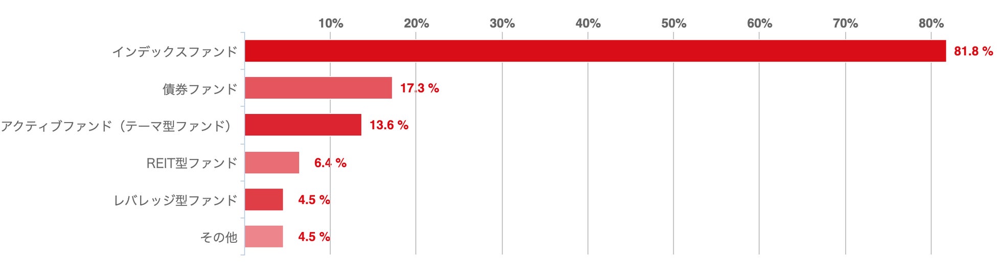 次いで「債券ファンド」が17.3%、「アクティブファンド(テーマ型ファンド)」が13.6%と続く。この他にも「REIT型ファンド(6.4%)」や「レバレッジ型ファンド(4.5%)」も少数ながら選ばれている。