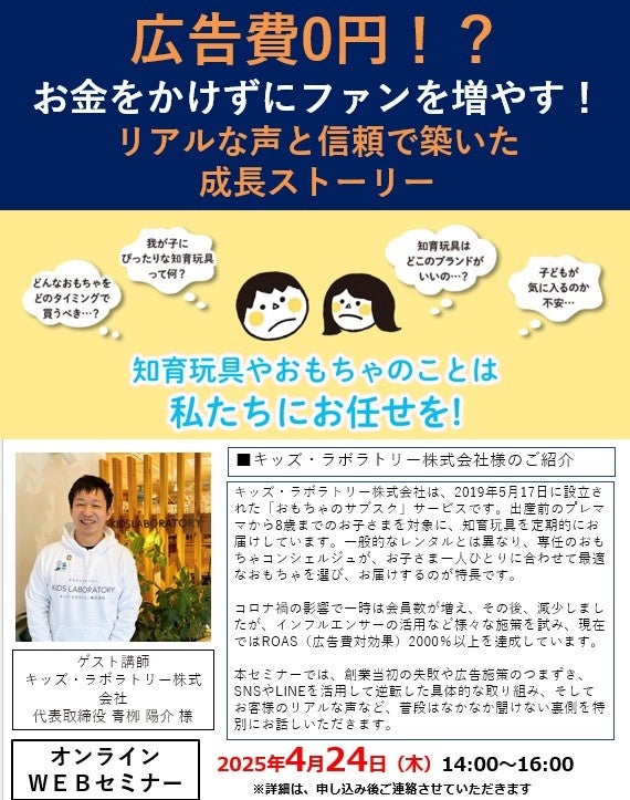 お金をかけずにファンを増やす!リアルな声と信頼で築いた成長ストーリー【キッズ・ラボラトリー株式会社の特別講演!】