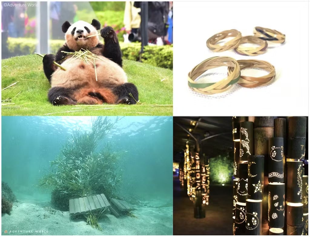このプロジェクトは、里山を荒廃させる竹を伐採し、アドベンチャーワールドで暮らすジャイアントパンダの食事として活用することで里山の環境を守り、廃棄していた竹や食べ残し、 糞を有効資源としてアップサイクルを推進するソーシャルプロジェクトです。2019年から始まり、竹あかり制作ワークショップ、アオリイカの産卵床づくりなど多岐にわたる活動を展開しています。