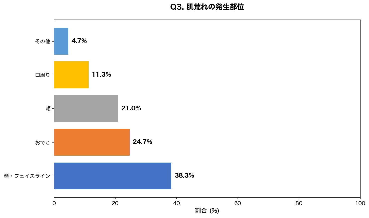 設問:受験期の肌荒れは、どの部位に最も多く発生しましたか?(最も気になった部位)