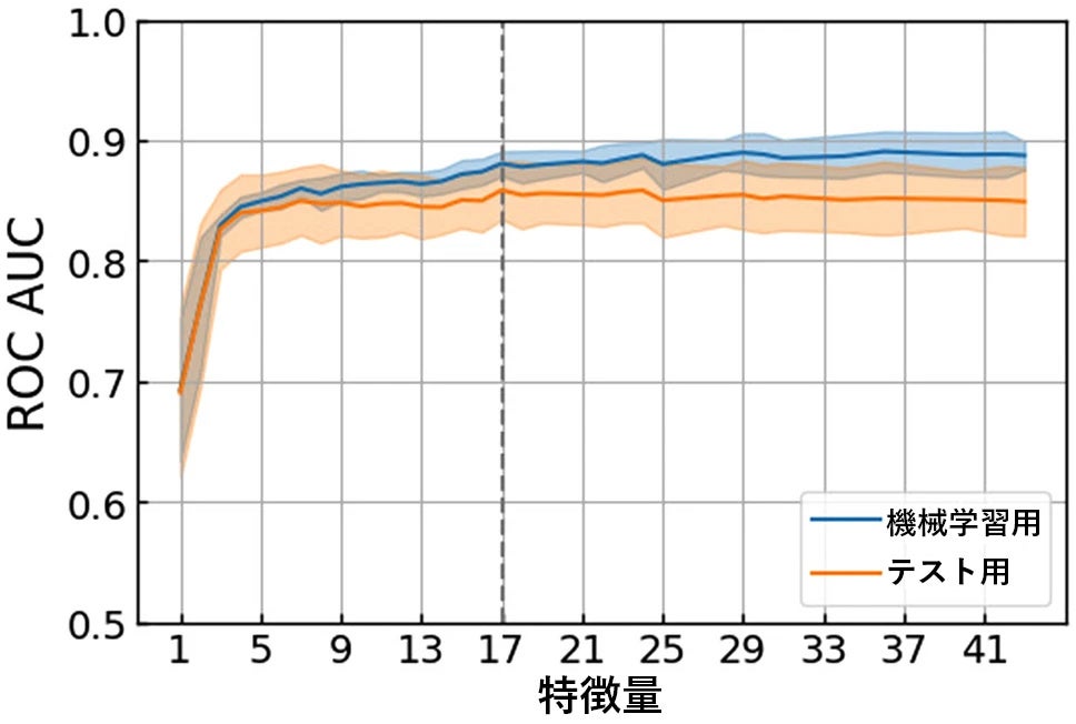 *1:文字通りに特徴を指す。予測アルゴリズムを作成する際に、病歴や症状などが特徴量にあたる。特徴量は、精度に有効なものを精査する「特徴選択」を行い、アルゴリズムの正確性に寄与する特徴量数を見出す。