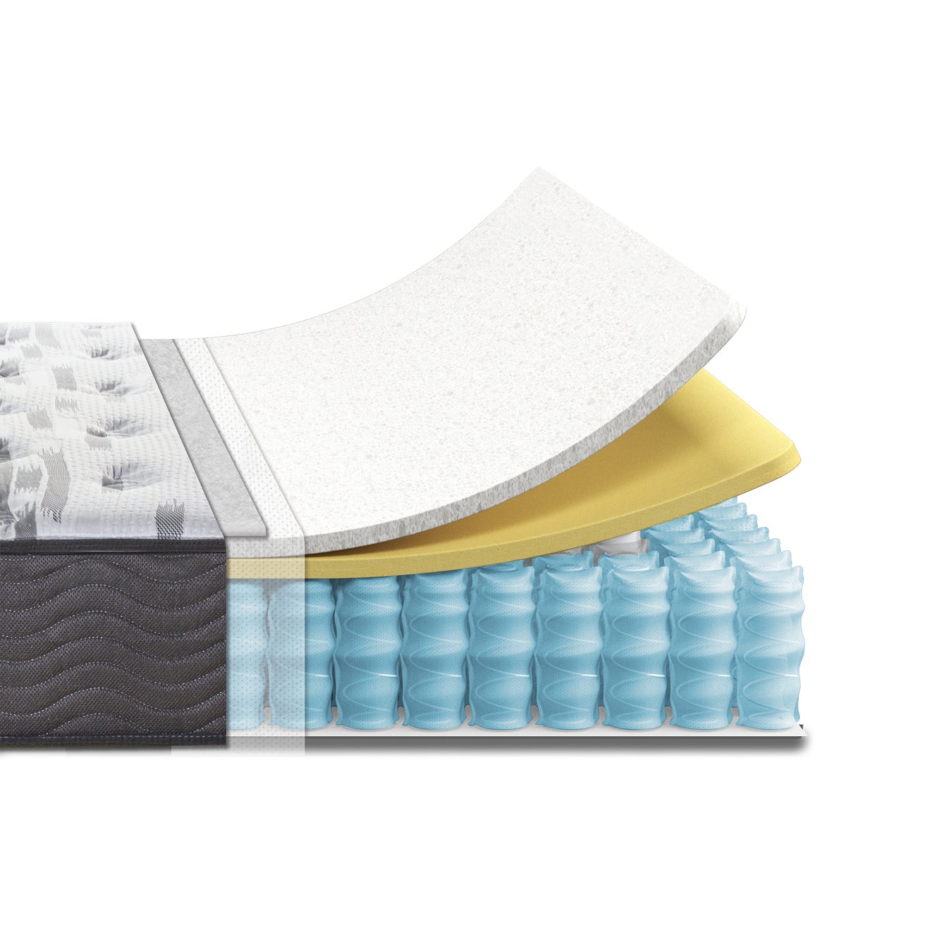 しっかりと体を支える硬めの寝心地のハイブリッドマットレス。理想の寝姿勢を叶えながら、優れた耐久性を実現。スタイリッシュなデザインも魅力。