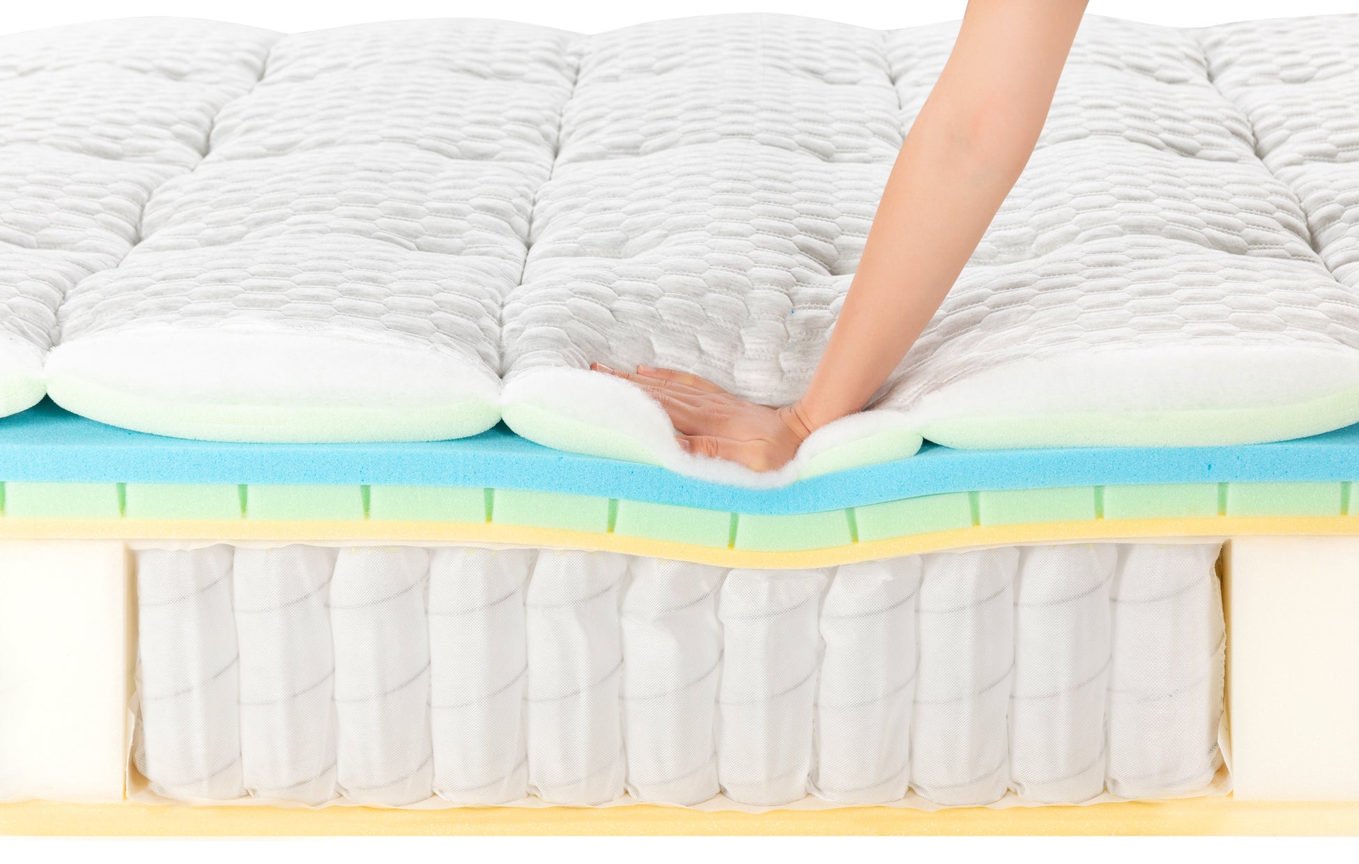 高密度のフォームを外側に配置することで端側の沈み込みを防ぎ、マットレス全体が広く利用可能に。