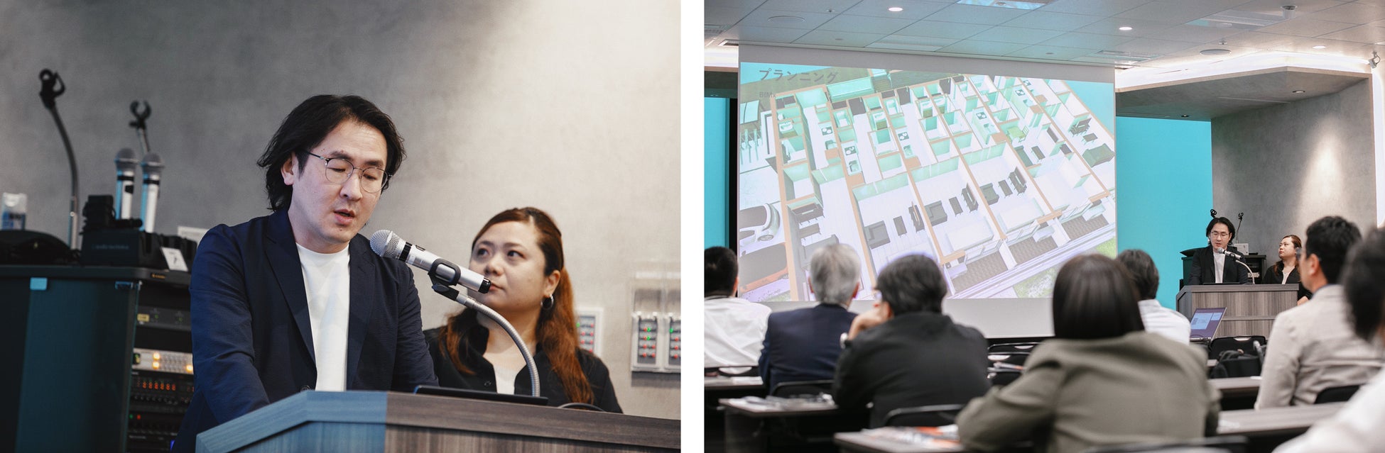 この成果は6月4日に開催されたGraphisoft全国ロードショーにて、当社建築本部設計開発部の石井宗弘と中村ちえみが「OPENBIMで広がる未来への展望 ~設計・原価連携DX運用~」と題して発表し、建設業界のDX推進事例として注目を集めました。
