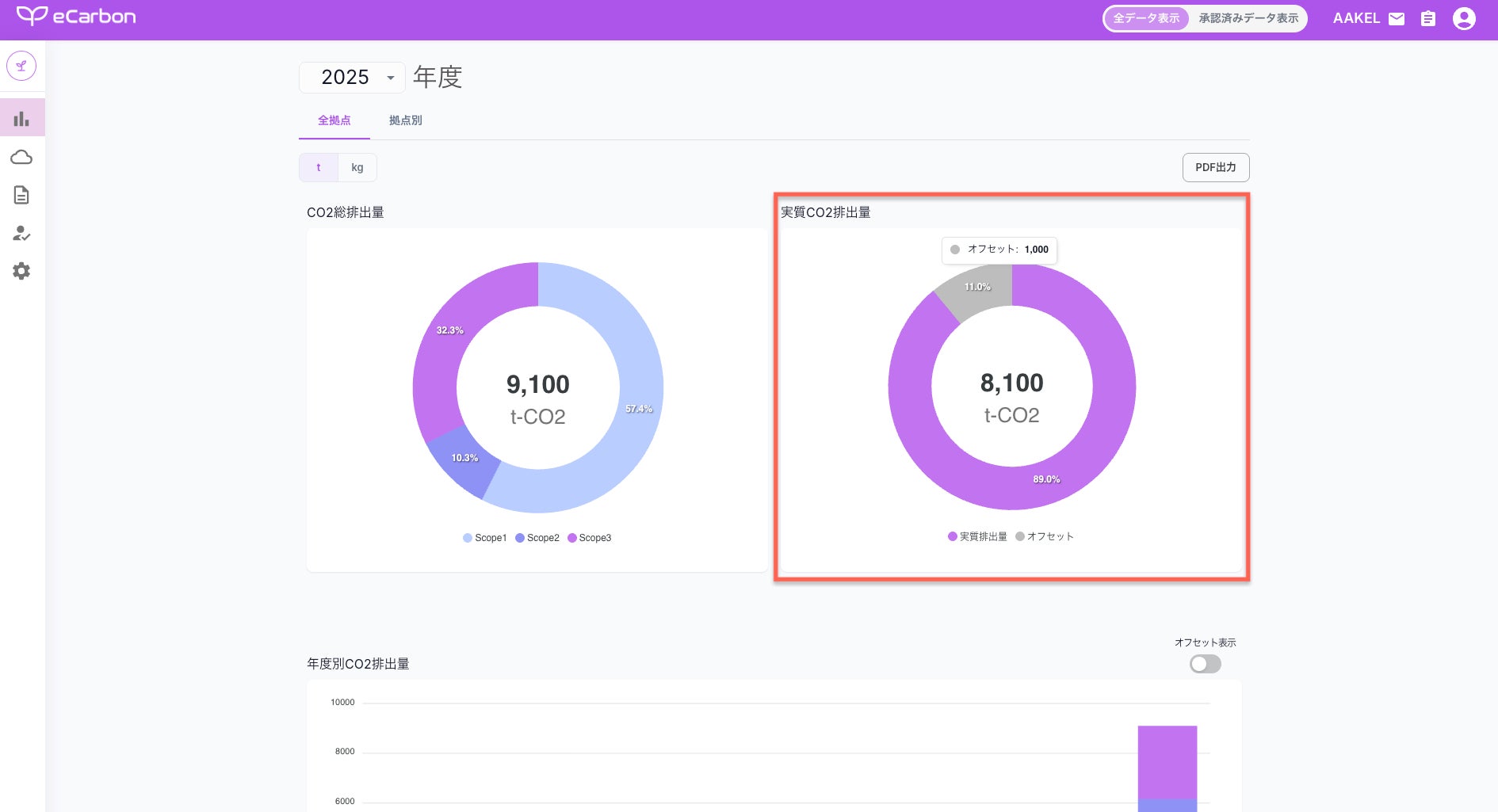 オフセット情報の登録・可視化機能を追加 | 温室効果ガス排出量可視化・削減シミュレーションツール「AAKEL eCarbon」