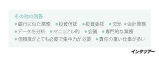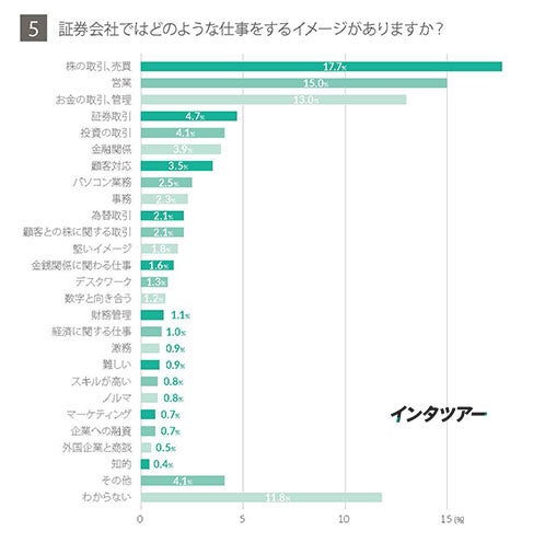 - 具体的な仕事のイメージは「株取引」「営業」の印象が強い