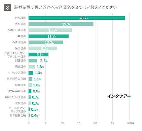 ・【知っている企業名】野村証券、大和証券など大手証券会社に加え、