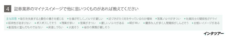 設問4では証券業界の悪いイメージを記述式で聞きました。