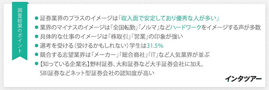 『23・24・25・26卒生対象 業界別イメージ調査 証券業界編』2022年7月実施【株式会社インタツアー】