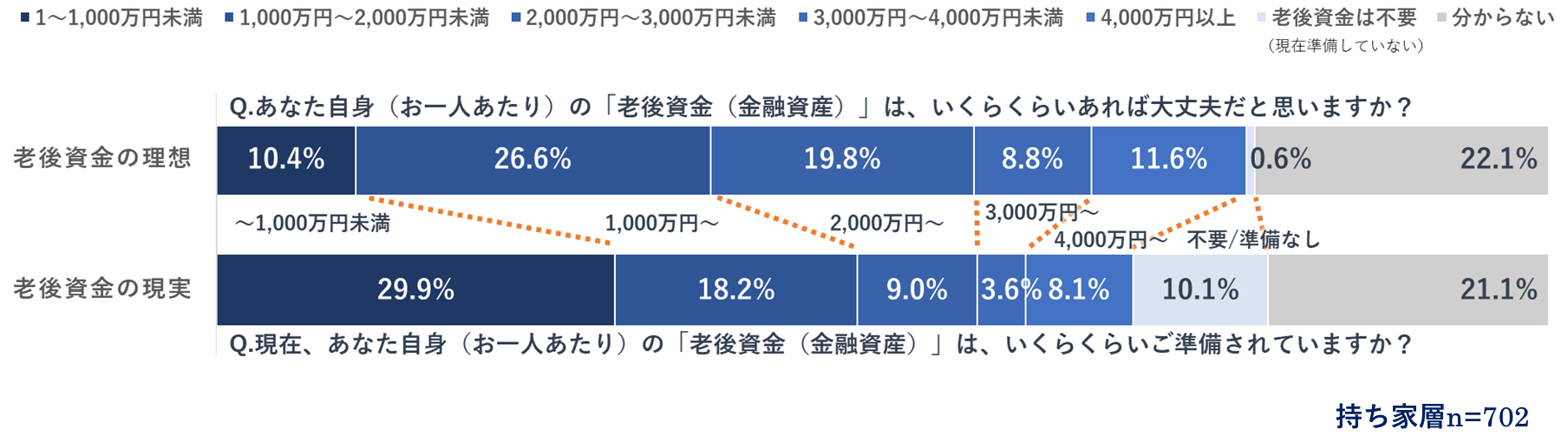 ■持ち家層における「一人あたりの老後資金」の理想と現実にギャップ
