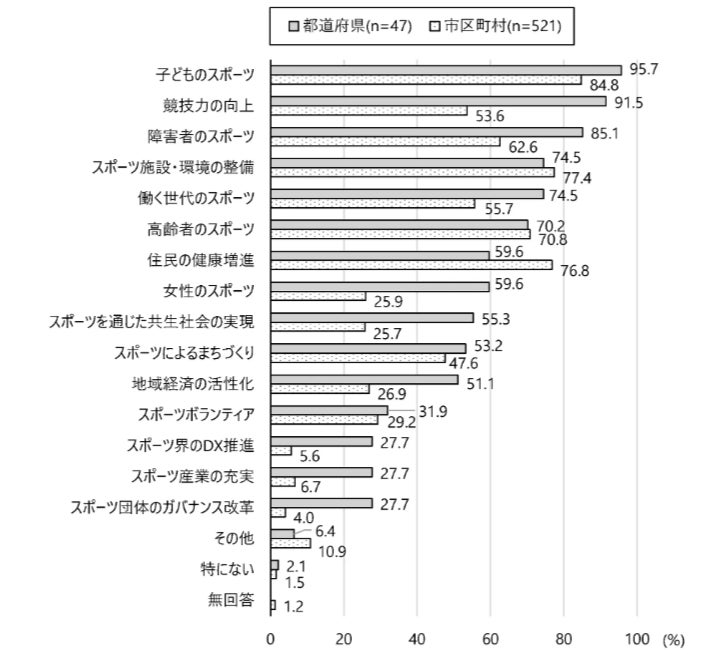 ● 「子どものスポーツ」が都道府県95.7%、市区町村84.8%ともに最多