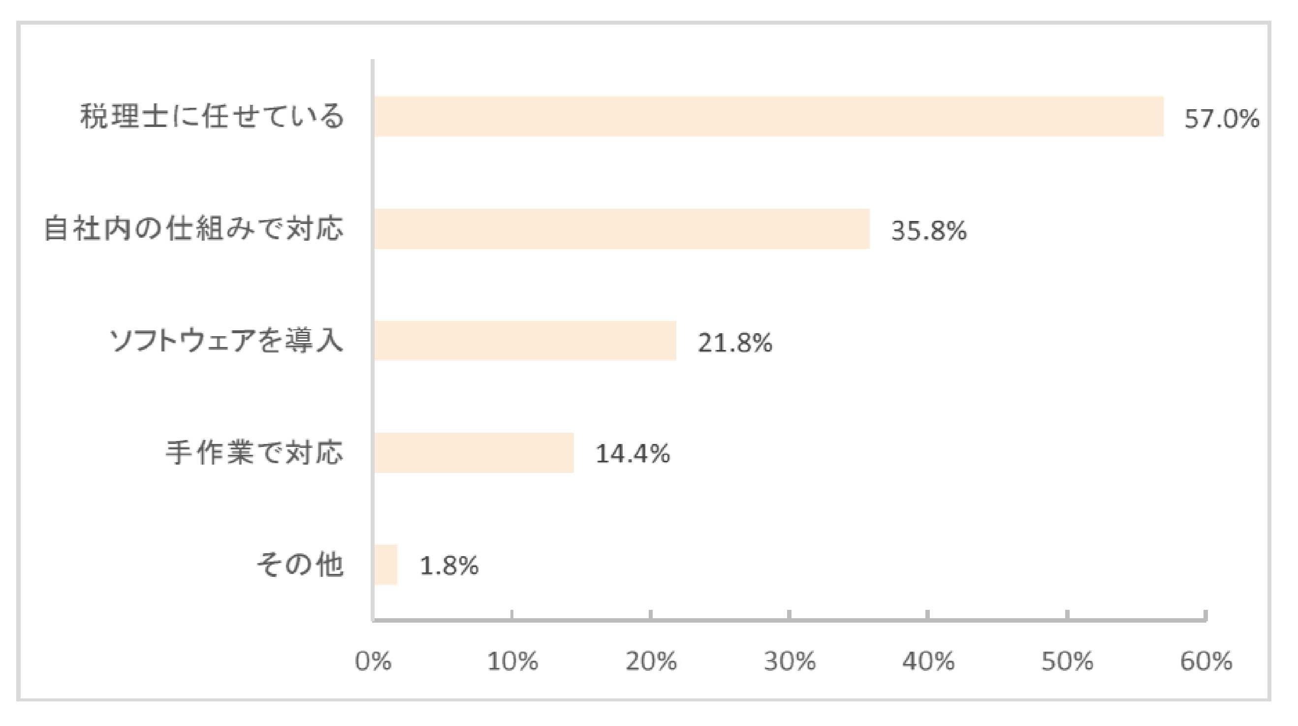 税理士に頼った制度導入:6割弱が顧問税理士を頼って準備